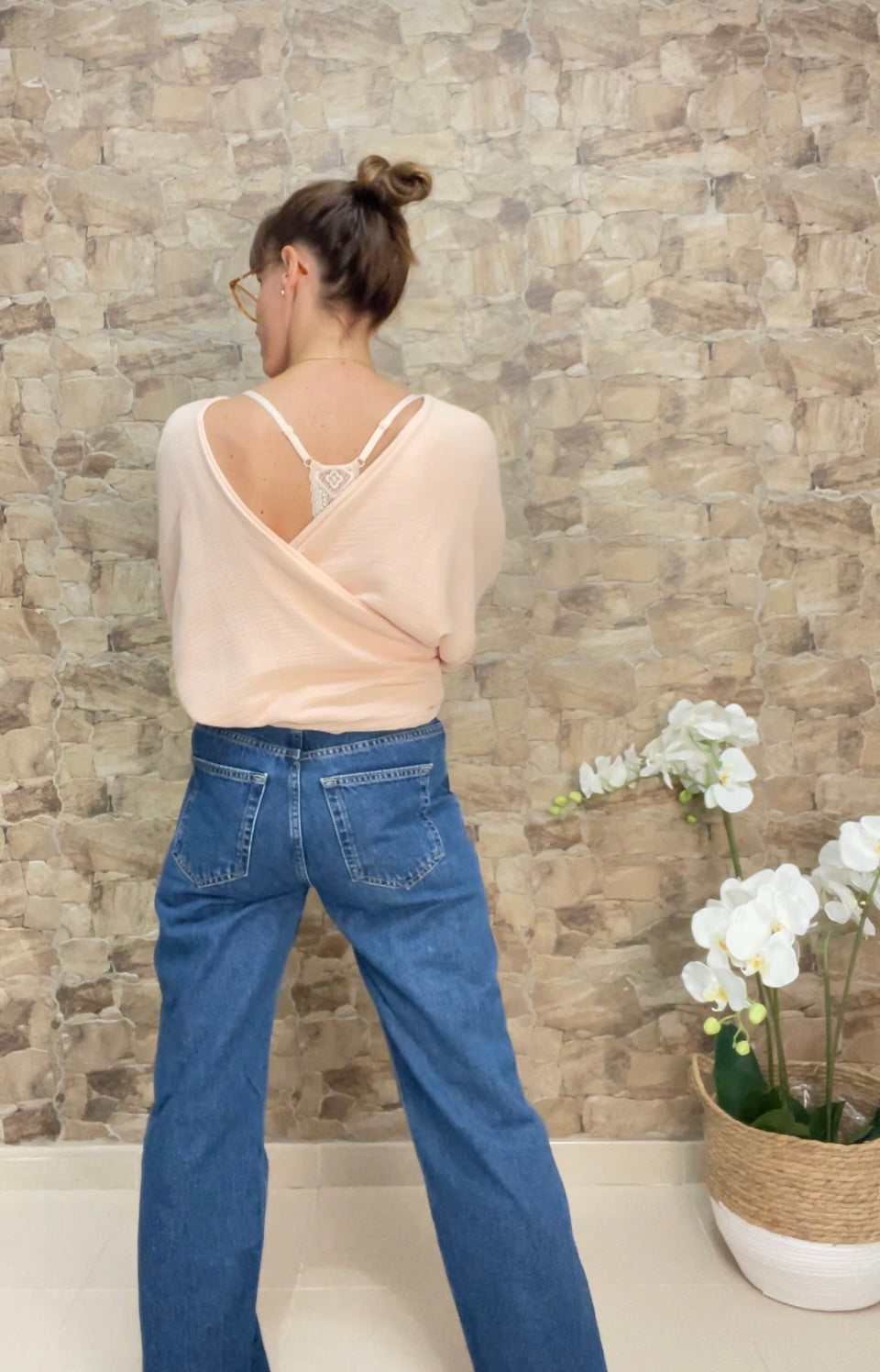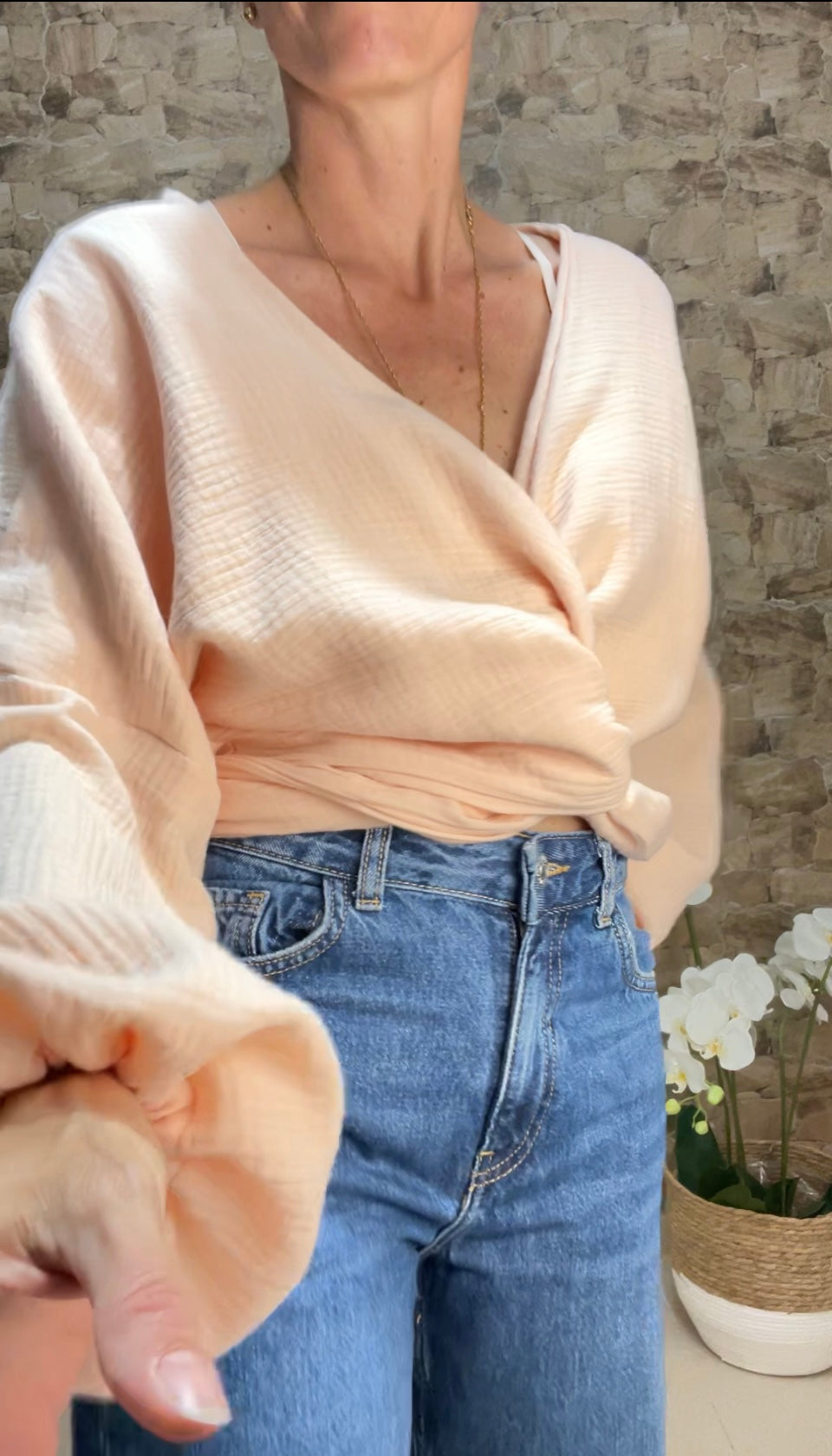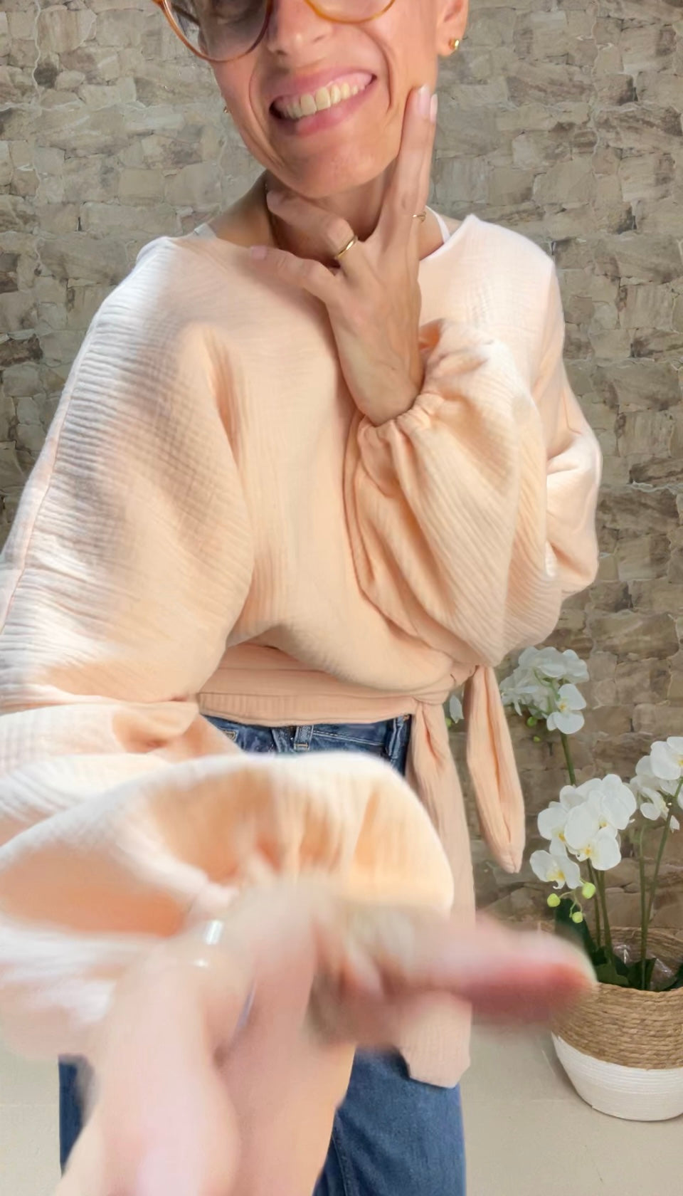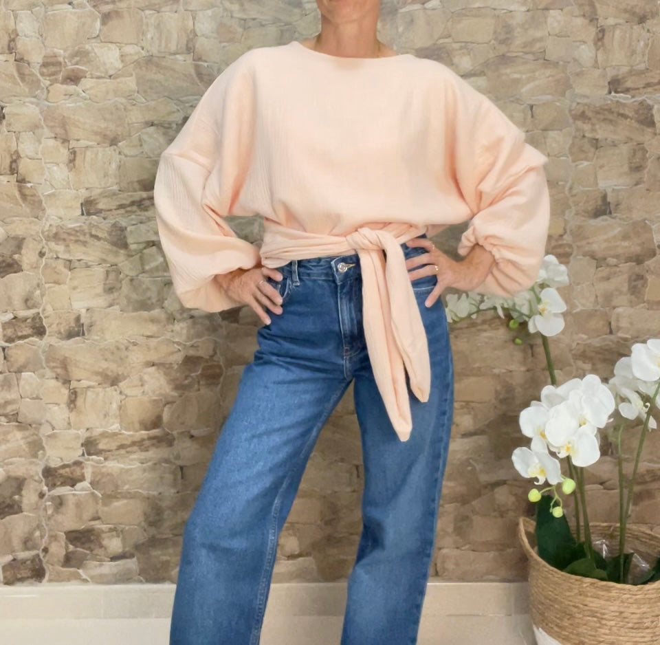 Blusa modello Rose da indossare come più ti piace, in perfetto stile be Genuine! 100% mussola di cotone organico color rosa.