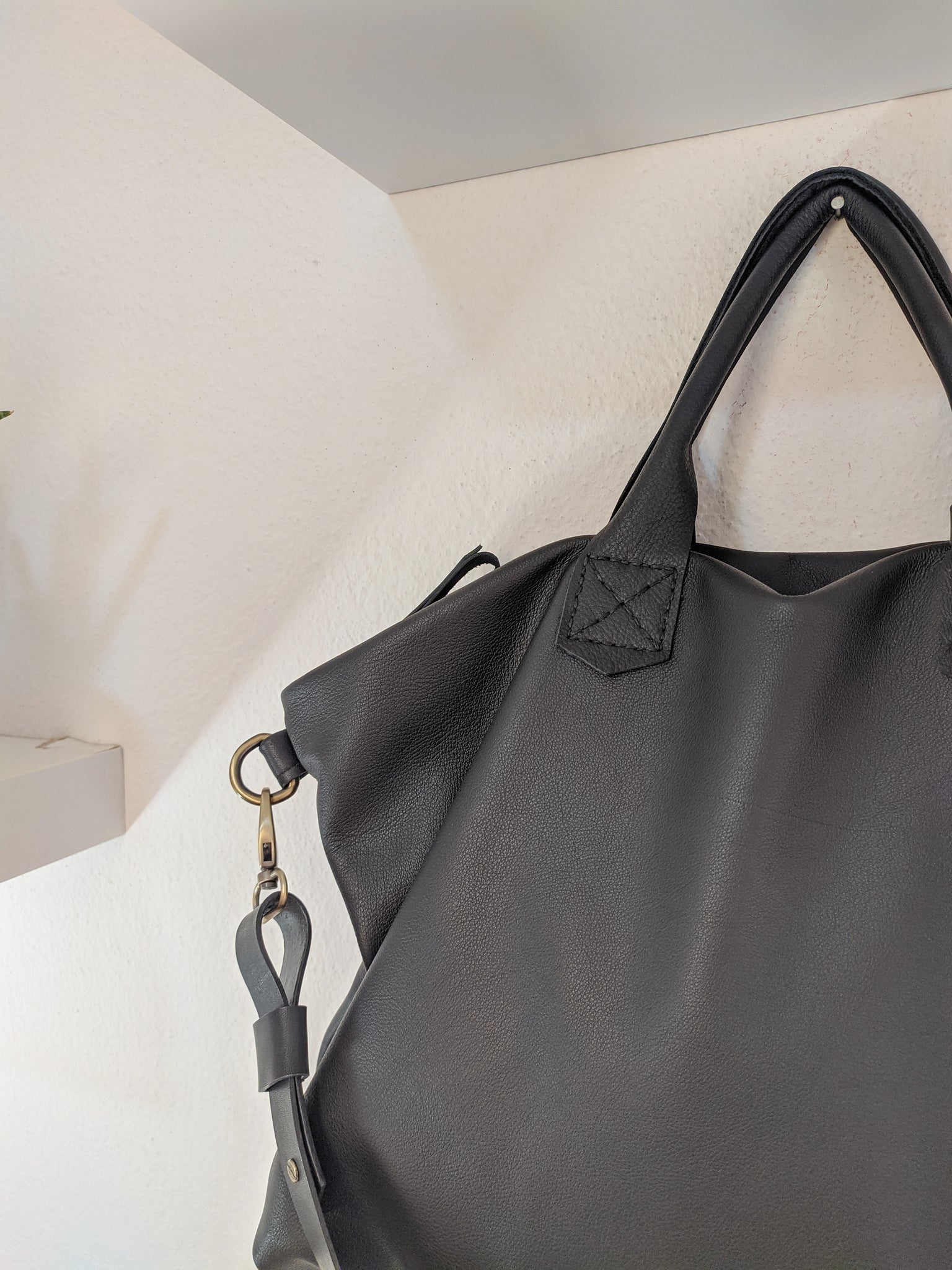 SUPER LIGHT AND SOFT Crossbody bag and handbag made of very soft italian leather. You can choose your leather: taupe, grey, cognac (NUBUCK finishing, with water resistant treatment) or black leather (nappa)