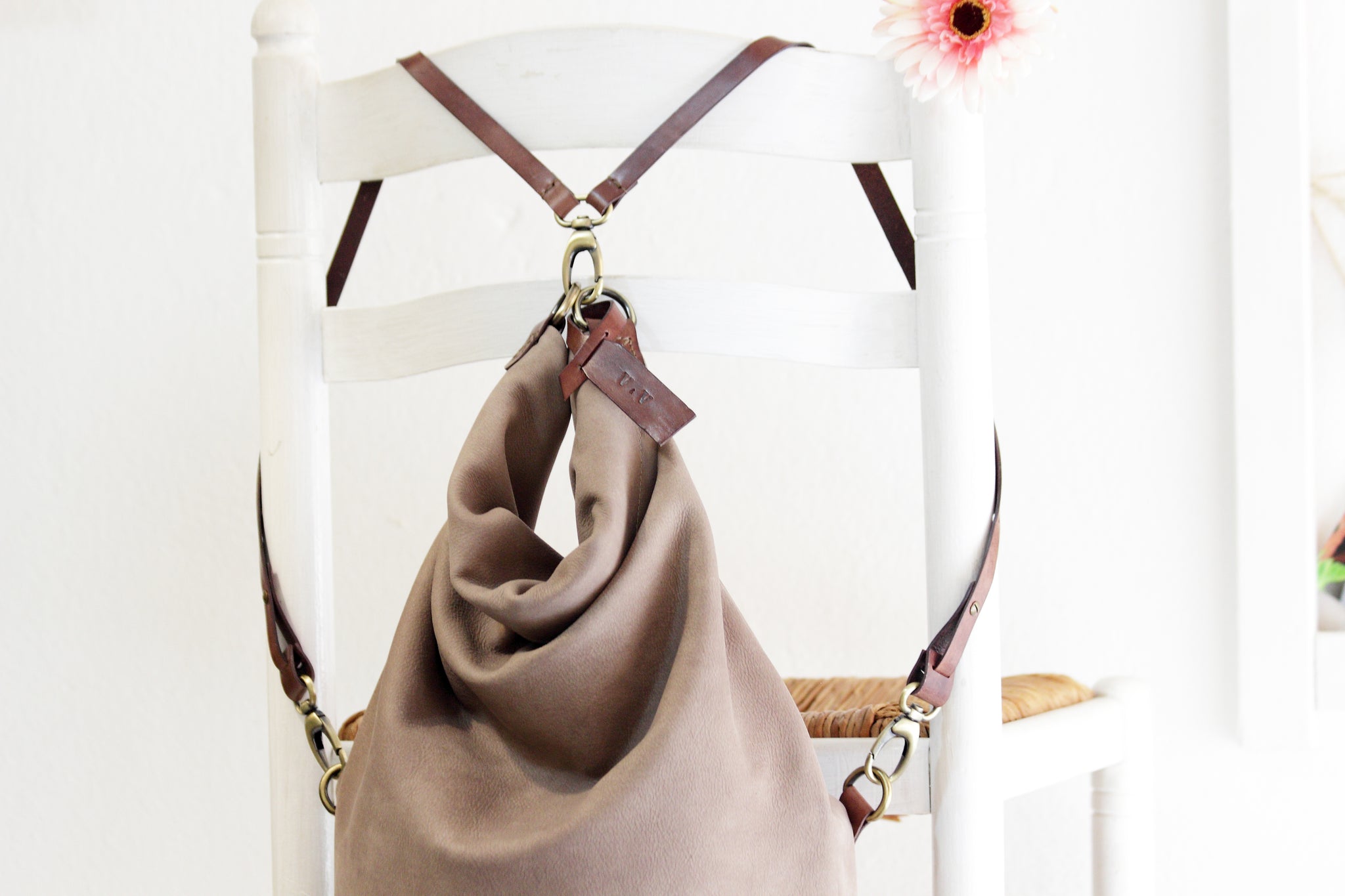Cleo CONVERTIBLE BACKPACK, leather backpack, made of italian leather, Taupe color.