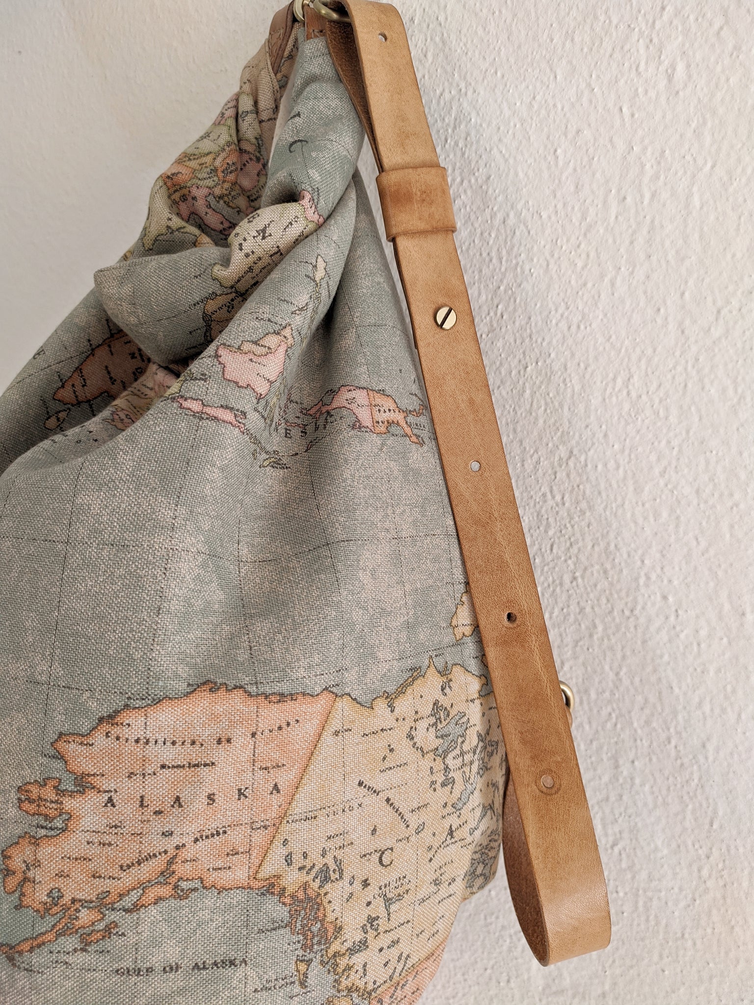 Convertible Backpack in tote bag, shoulder bag, 3 ways to wear it... Made of limited edition Maps fabric and personalized with your name engraved on removable leather tag. Straps are made of vegetable tanned leather and they are adjustable. Basic price includes 1 strap, you can choose if to buy just one or both; and you can choose to buy also the outside pocket to have quick phone access.