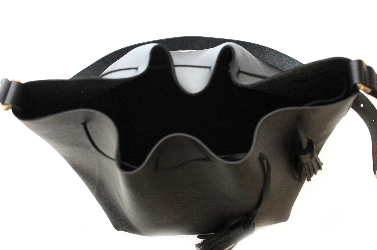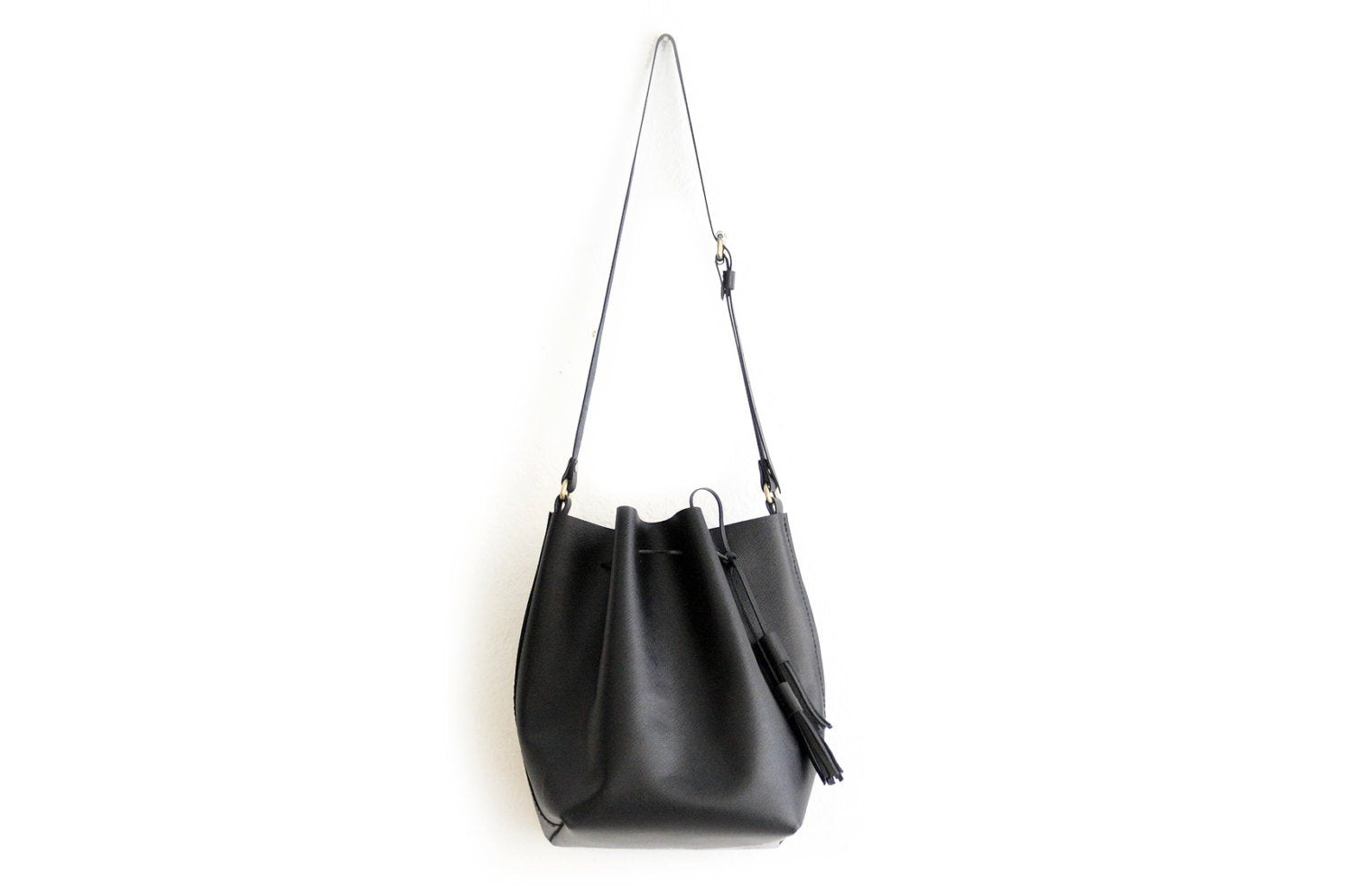 Bucket bag made of italian leather: calf skin saffiano printed leather.
