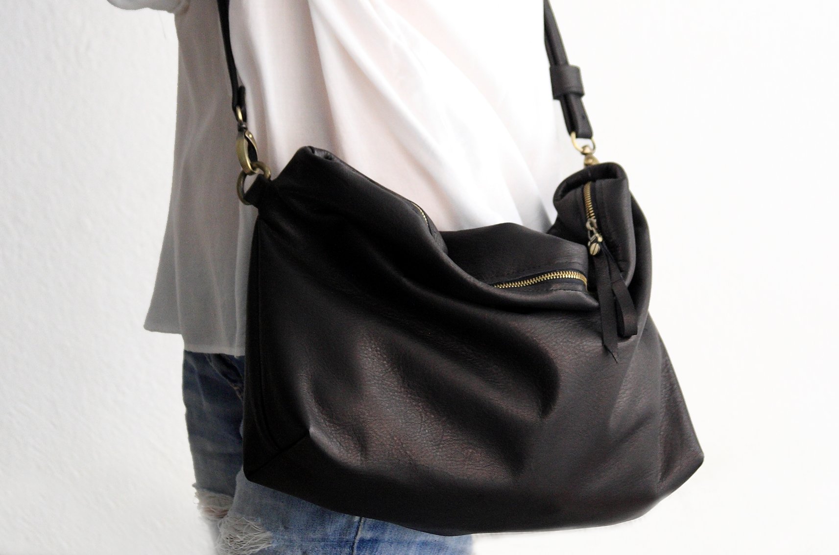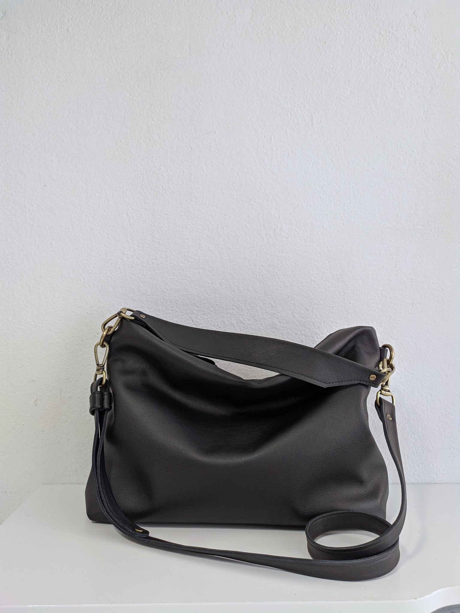 Craft, minimal and super light Crossbody bag made of very soft italian leather, aniline finishing, black.