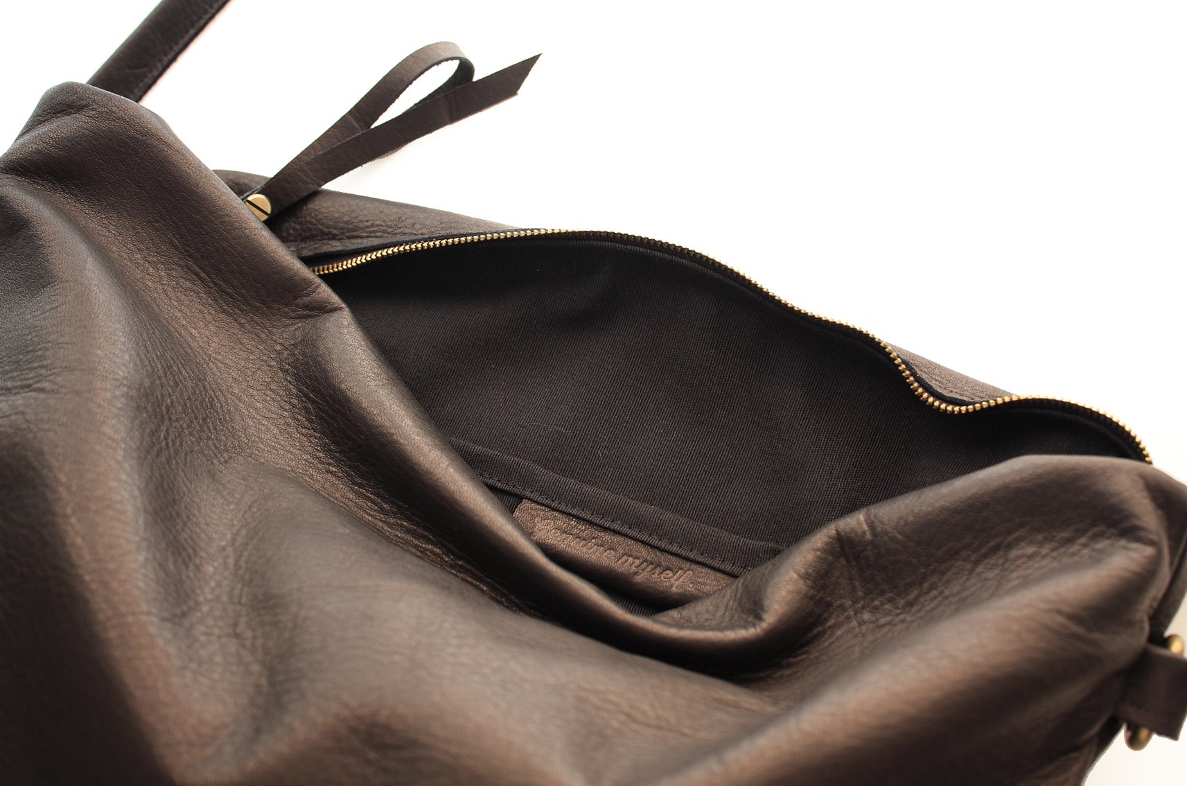 Craft, minimal and super light Crossbody bag made of very soft italian leather, aniline finishing, black.