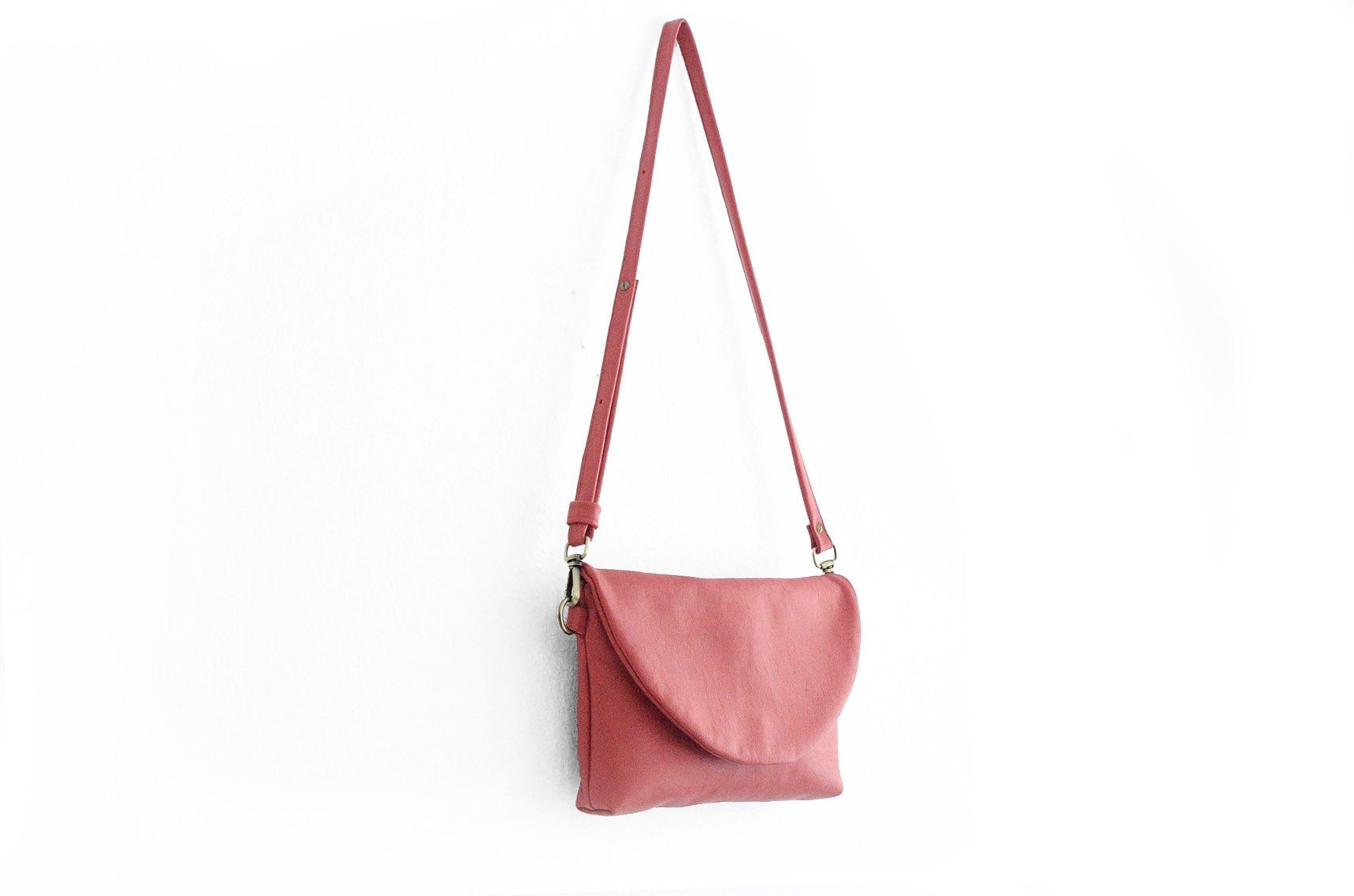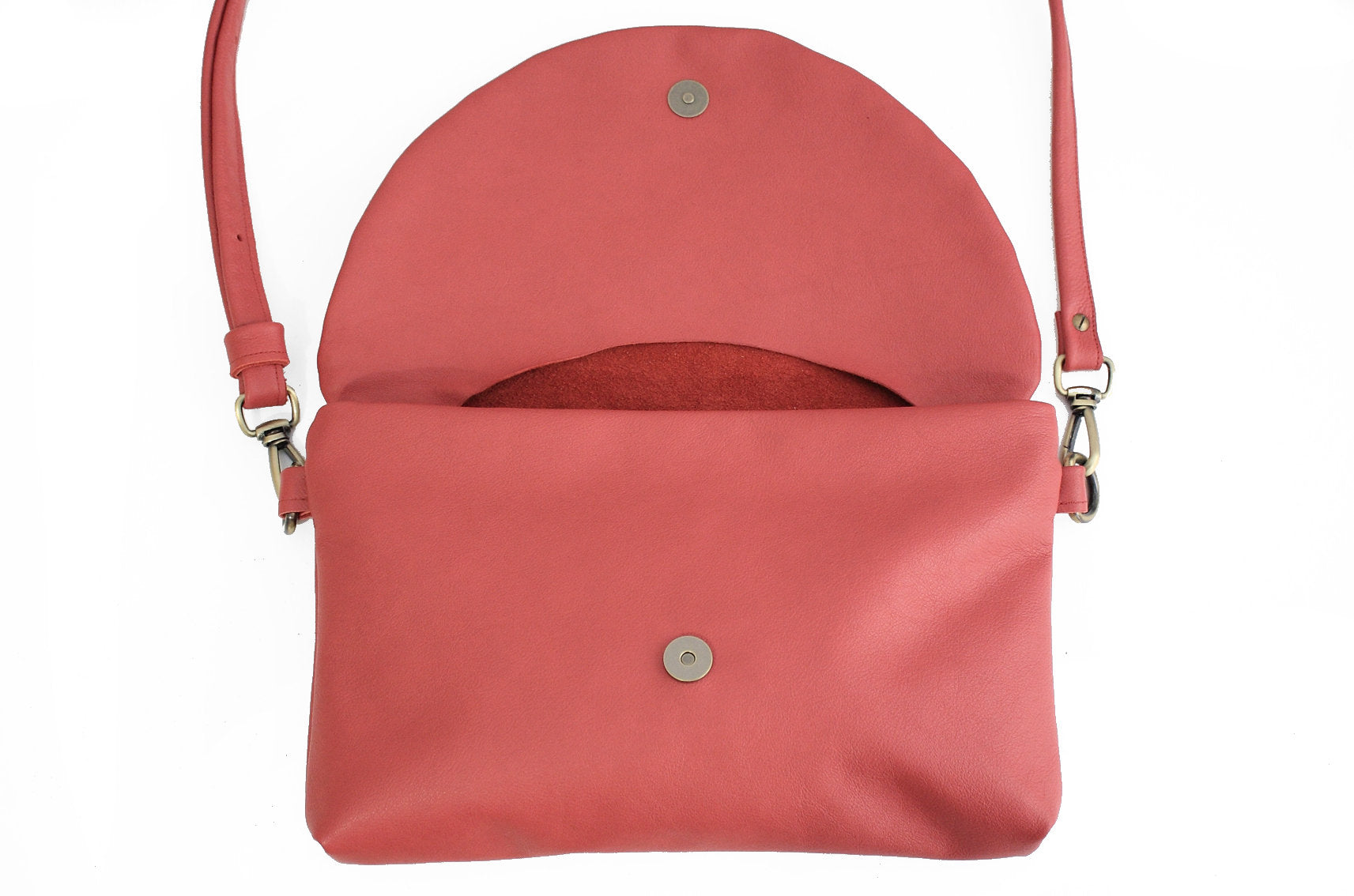 Crossbody bag made of very soft italian leather, aniline finishing, red.