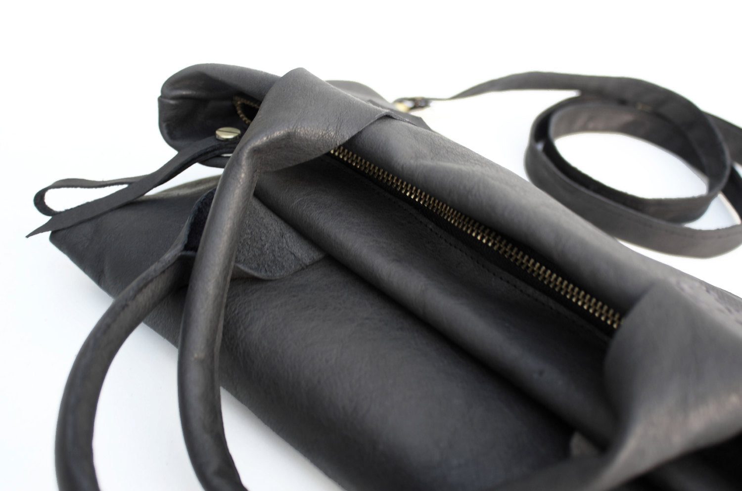Crossbody bag made of very soft italian leather, vegetable tanned, black.