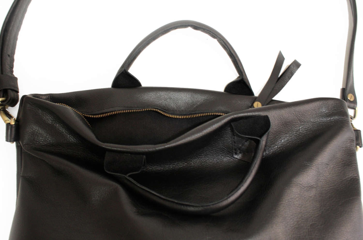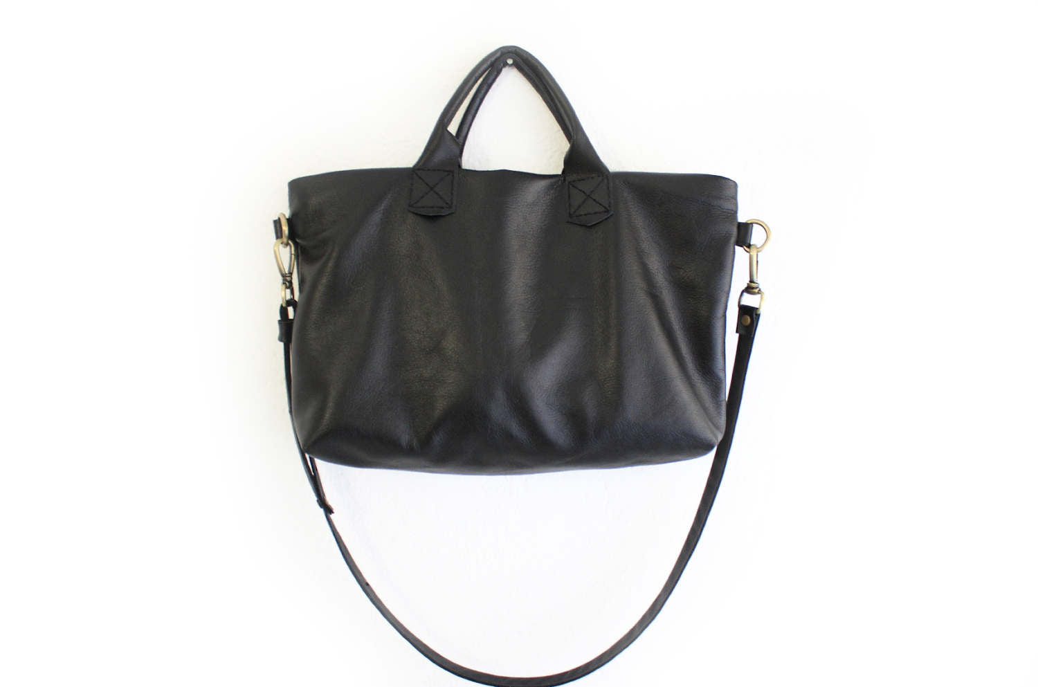 Crossbody bag made of very soft italian leather, aniline finishing, black.