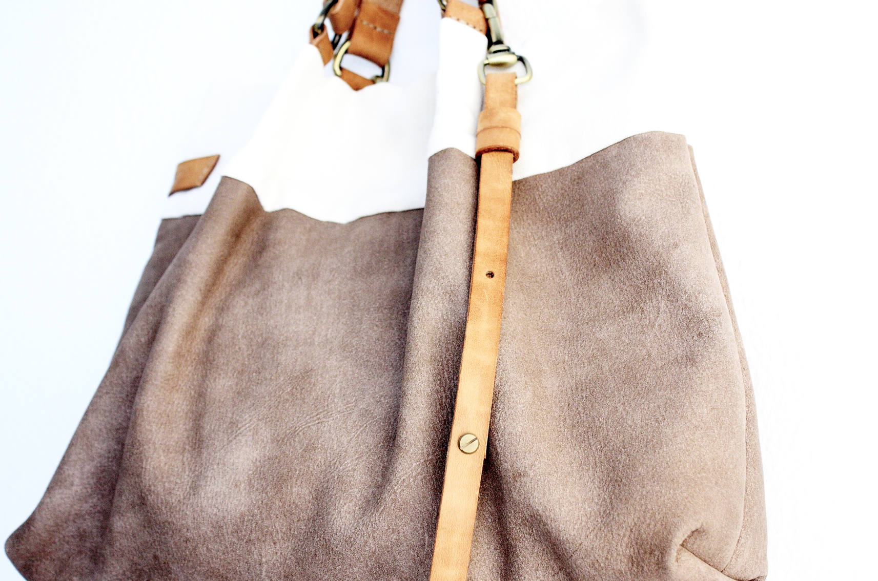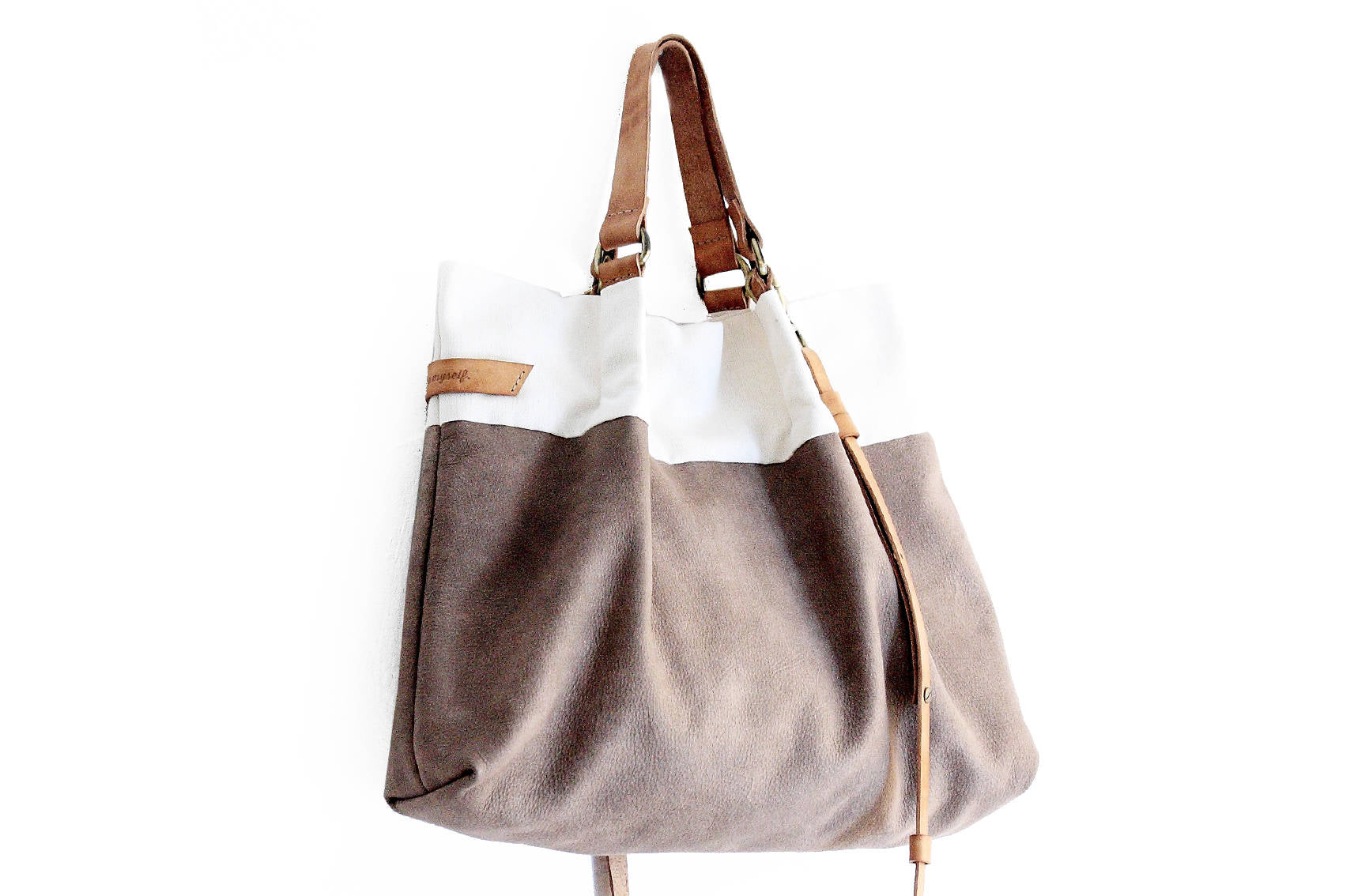 TOTE bag and hand bag made of super soft nubuck leather, taupe leather, waterproof canvas and enriched with handles and strap in high-quality italian leather, vegetable tanned.