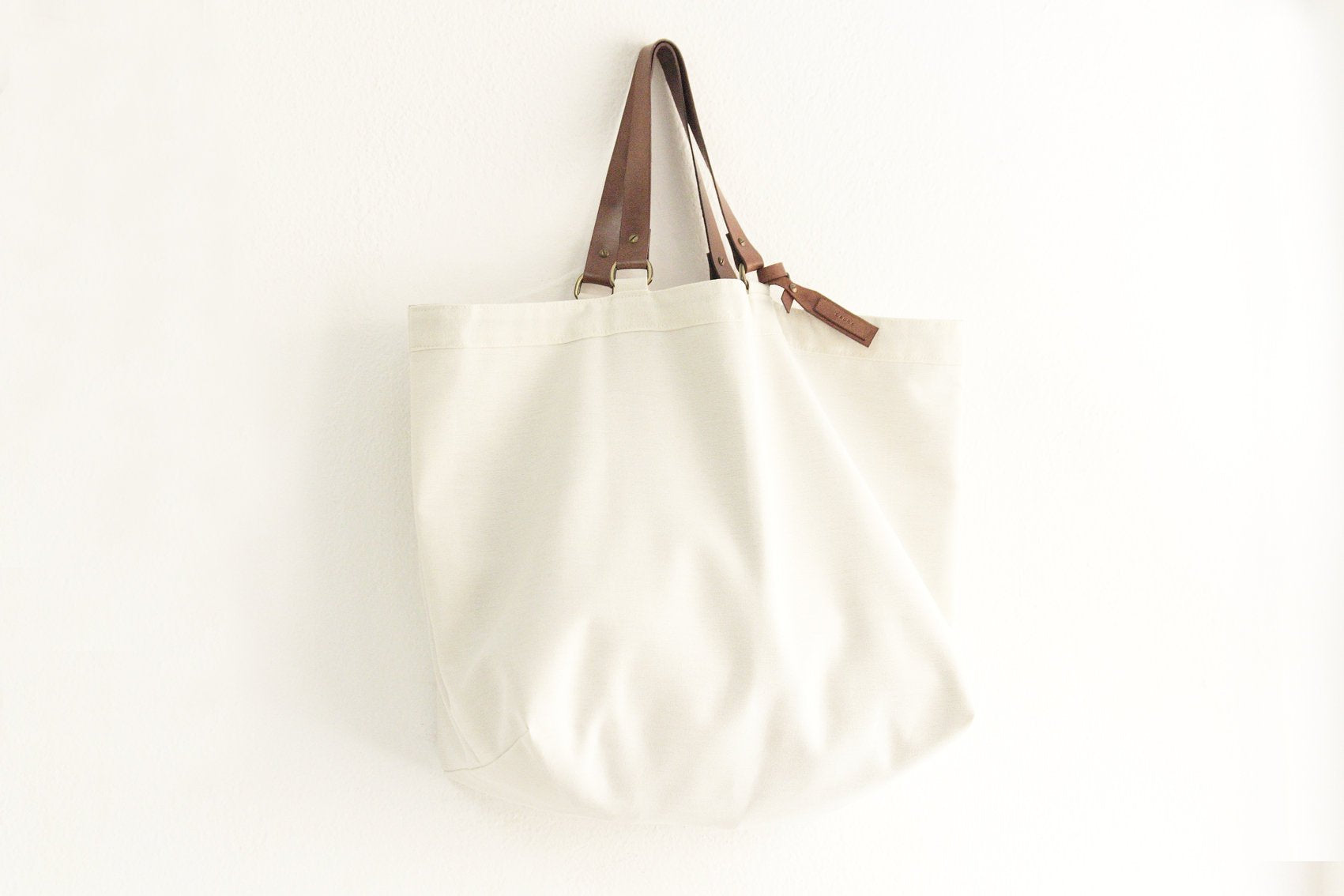 TOTE bag , Shopping bag, Shopper bag made of canvas beige water resistant and enriched with details in High-quality italian leather, vegetable tanned.