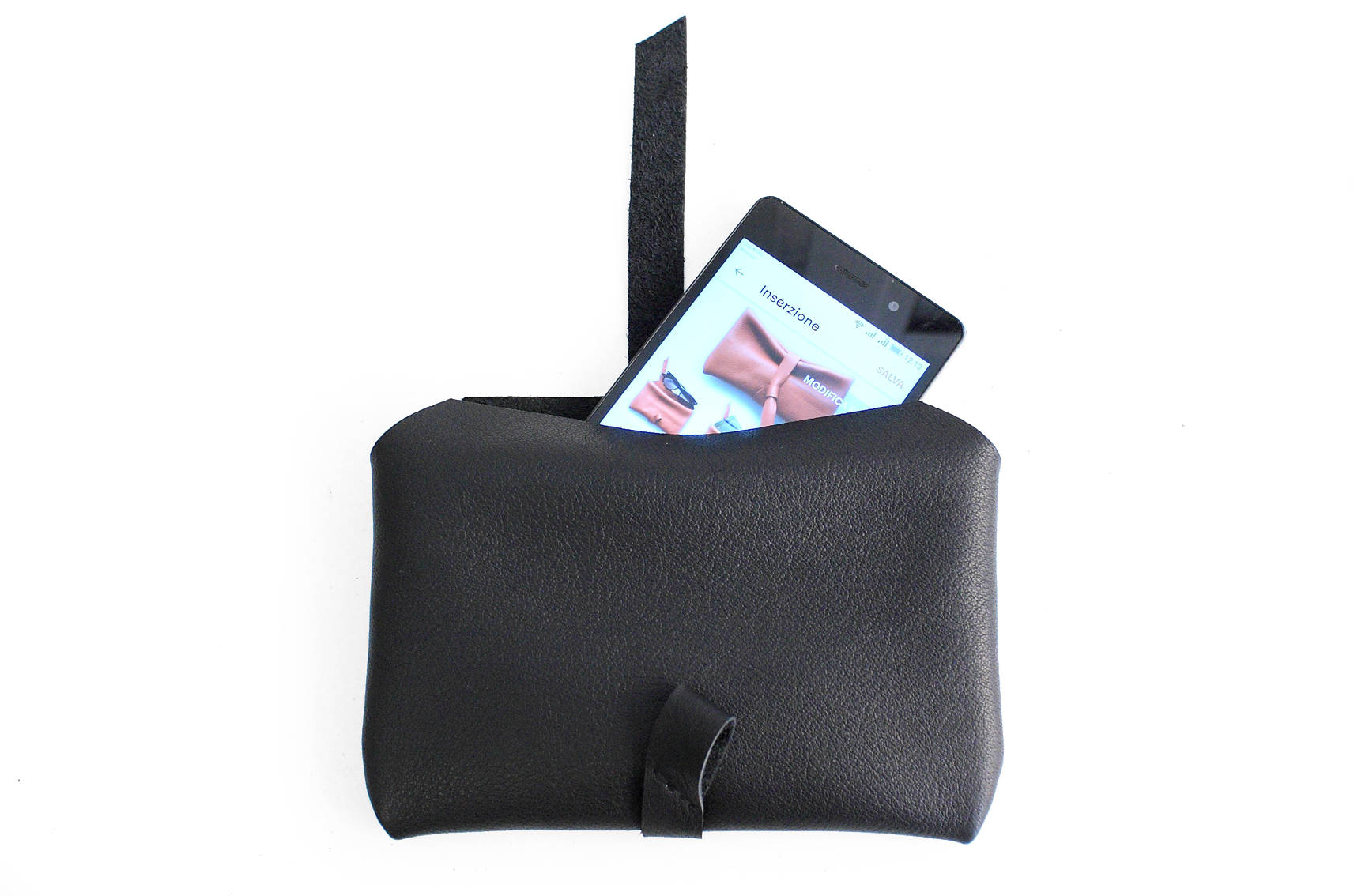 Little pouch made of italian nappa leather, black, aniline finishing.