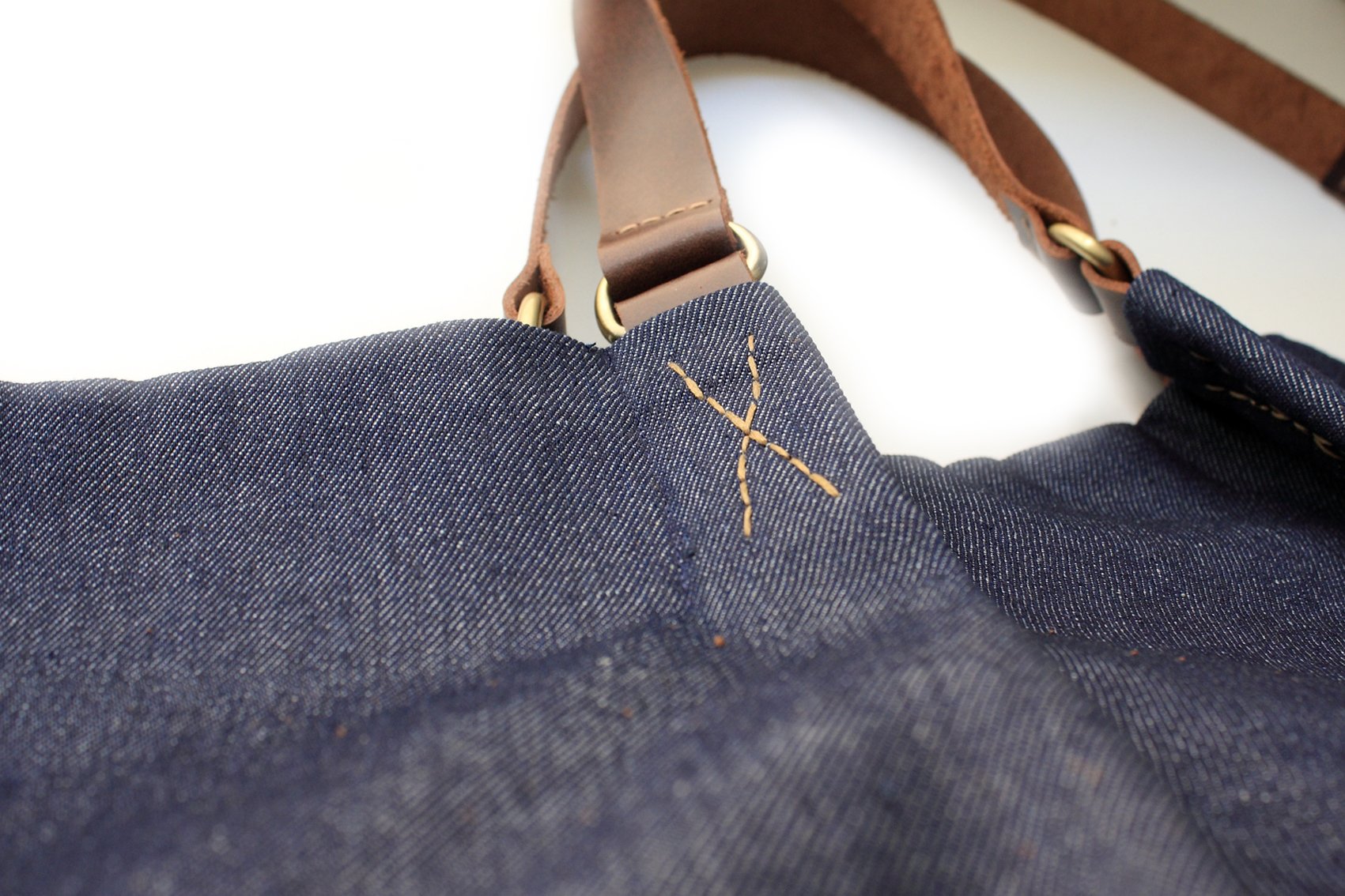 Made entirely by hand with care while processing your order, especially for you. Made of denim and enriched with details in vegetable tanned leather. Personalized with name.